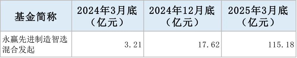 类似的还有永赢先进制造智选混合基金。截至3月底,永赢先进制造智选混合基金规模为115.18亿元,较去年底增长97.56亿元,较去年3月底增长111.97亿元。
