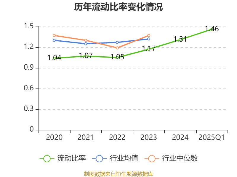 2025年第一季度,公司流动比率为1.46,速动比率为0.83。