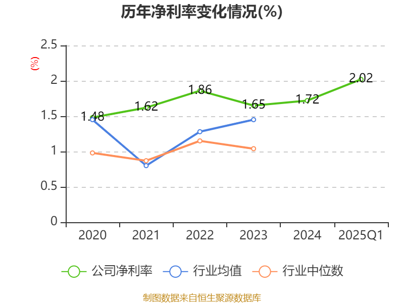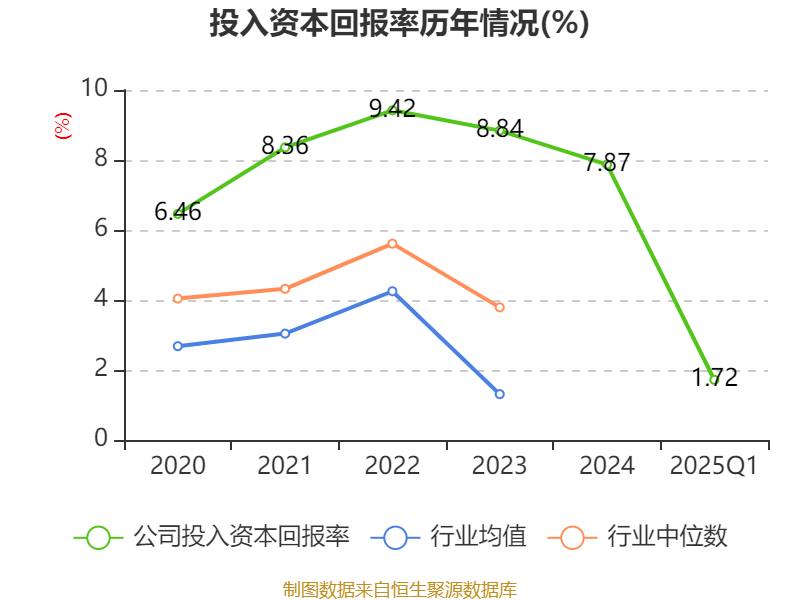 盈利能力方面, 2025年一季度公司加权平均净资产收益率为2.57%,同比上升1.77个百分点。公司2025年第一季度投入资本回报率为1.72%,较上年同期上升0.94个百分点。