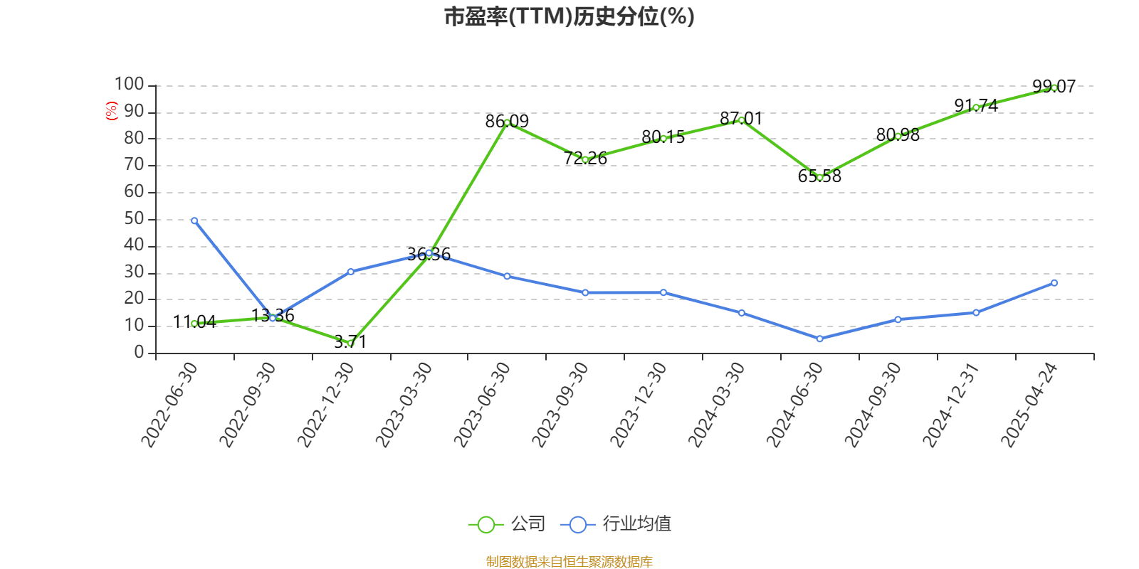 市盈率、市净率为负时,不显示当期分位数,会导致折线图中断。