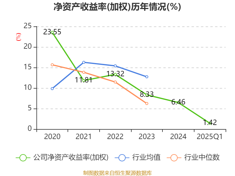 盈利能力方面, 2025年一季度公司加权平均净资产收益率为1.42%,同比下降0.05个百分点。公司2025年第一季度投入资本回报率为1.28%,较上年同期上升0.12个百分点。