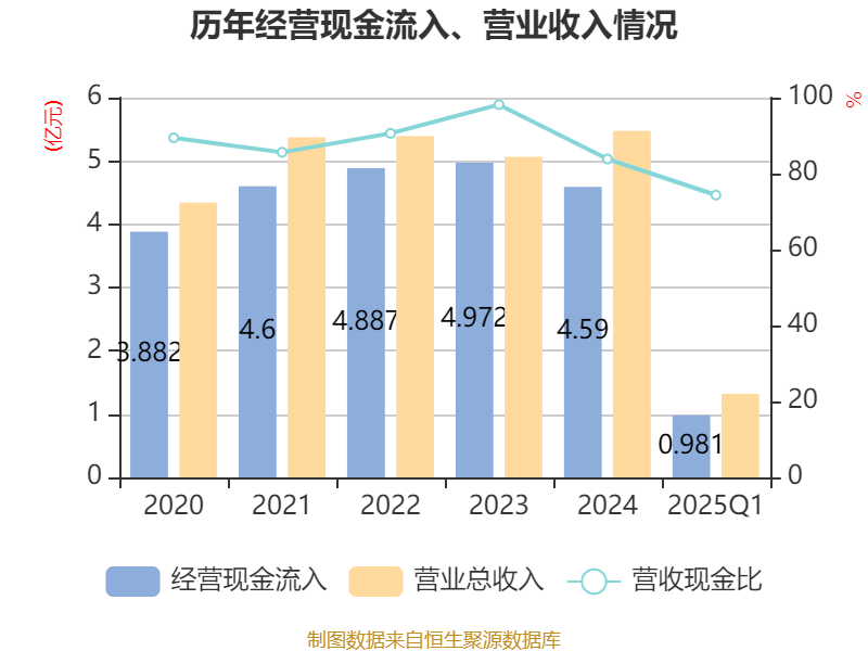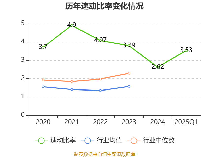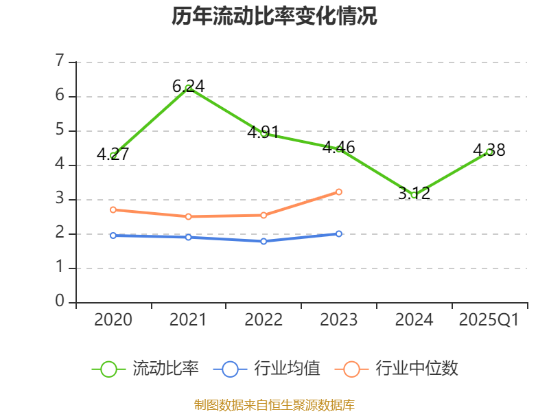 2025年第一季度,公司流动比率为4.38,速动比率为3.53。