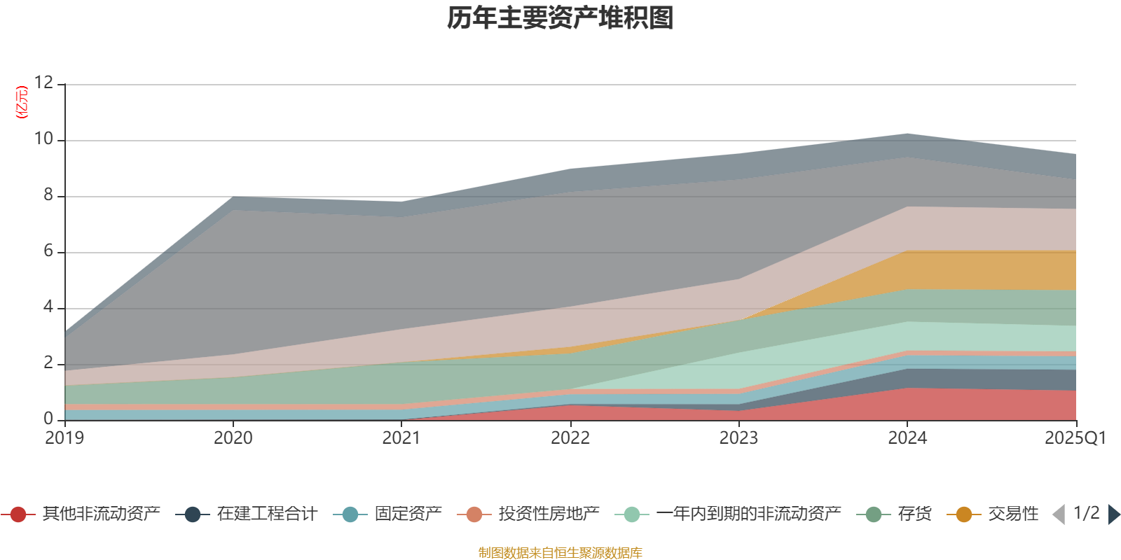 资产重大变化方面,截至2025年一季度末,公司货币资金较上年末减少40.59%,占公司总资产比重下降6.19个百分点;存货较上年末增加9.72%,占公司总资产比重上升2.07个百分点;交易性金融资产合计较上年末增加2.38%,占公司总资产比重上升1.41个百分点;在建工程合计较上年末增加8.31%,占公司总资产比重上升1.12个百分点。