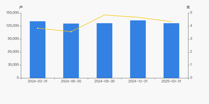截至2025年3月31日,公司最新总股本为66.45亿股,其中流通股本为63.15亿股。户均持有流通股数量由上期的4.75万股上升至4.99万股,户均流通市值21.67万元。