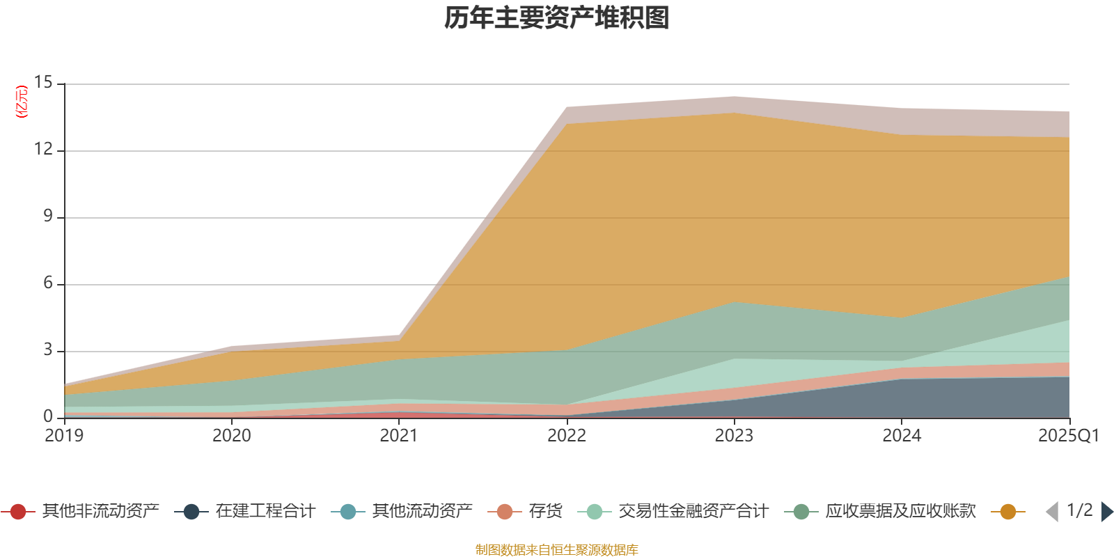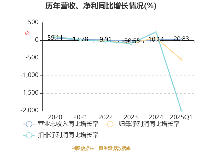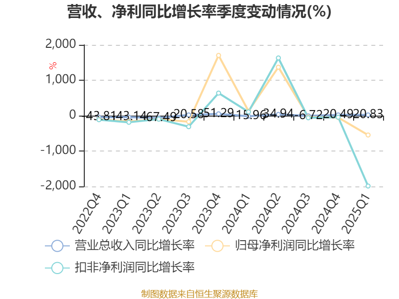 资产重大变化方面,截至2025年一季度末,公司货币资金较上年末减少23.87%,占公司总资产比重下降13.64个百分点;交易性金融资产合计较上年末增加528.1%,占公司总资产比重上升11.65个百分点;存货较上年末增加27.91%,占公司总资产比重上升1.02个百分点;在建工程合计较上年末增加5.32%,占公司总资产比重上升0.8个百分点。