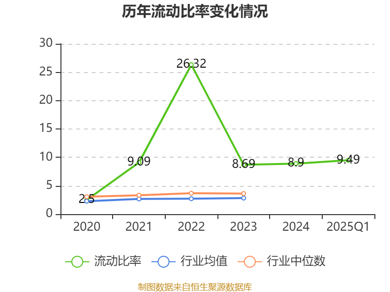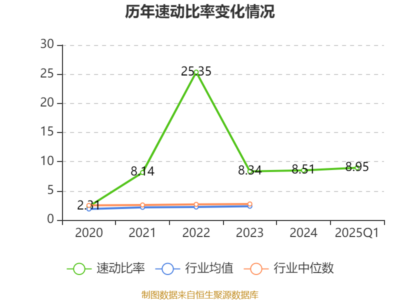 2025年第一季度,公司流动比率为9.49,速动比率为8.95。