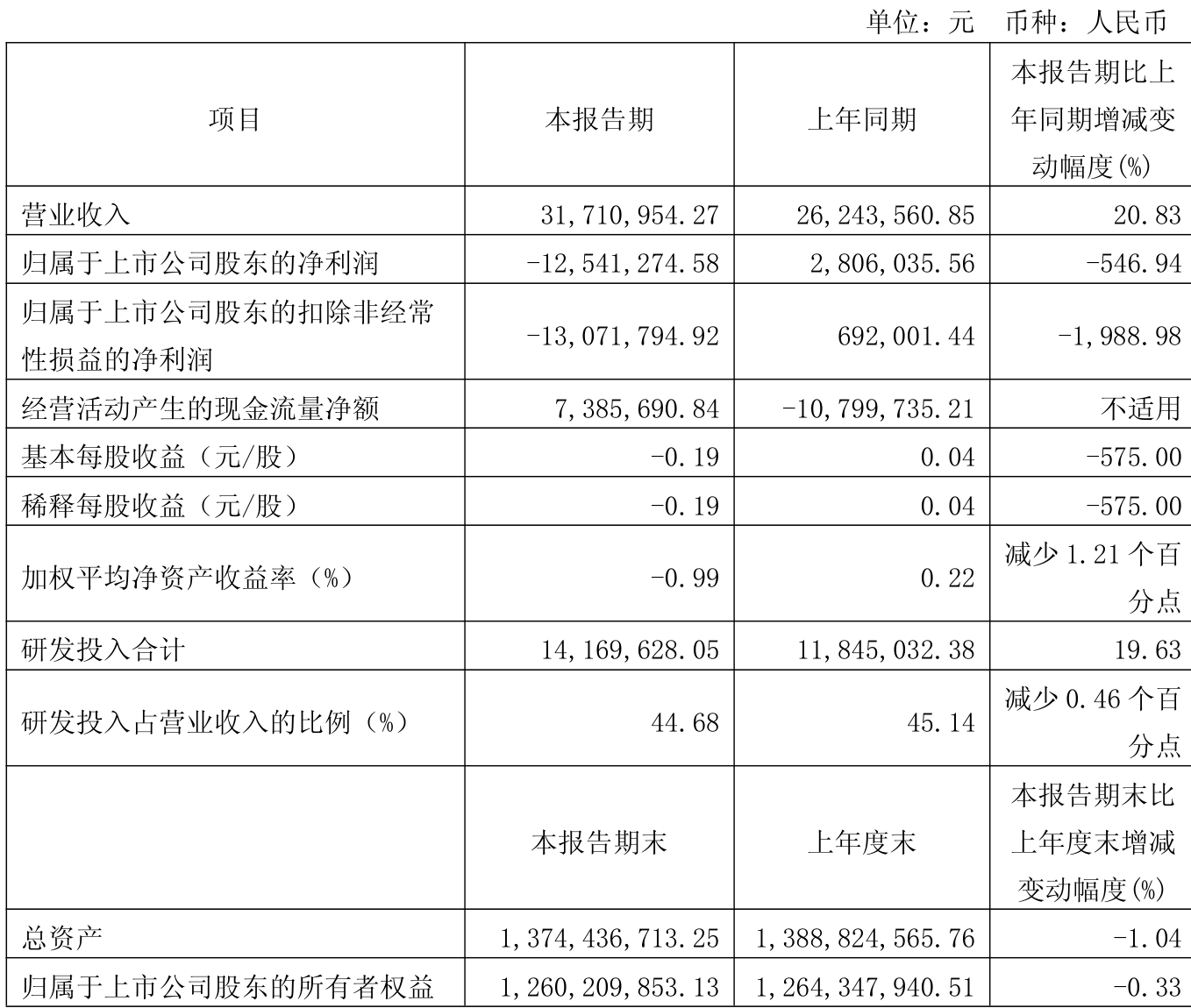 中证智能财讯思林杰(688115)4月26日披露2025年第一季度报告。公司实现营业总收入3171.1万元,同比增长20.83%;归母净利润亏损1254.13万元,上年同期盈利280.6万元;扣非净利润亏损1307.18万元,上年同期盈利69.2万元;经营活动产生的现金流量净额为738.57万元,上年同期为-1079.97万元;报告期内,思林杰基本每股收益为-0.19元,加权平均净资产收益率为-0.99%。