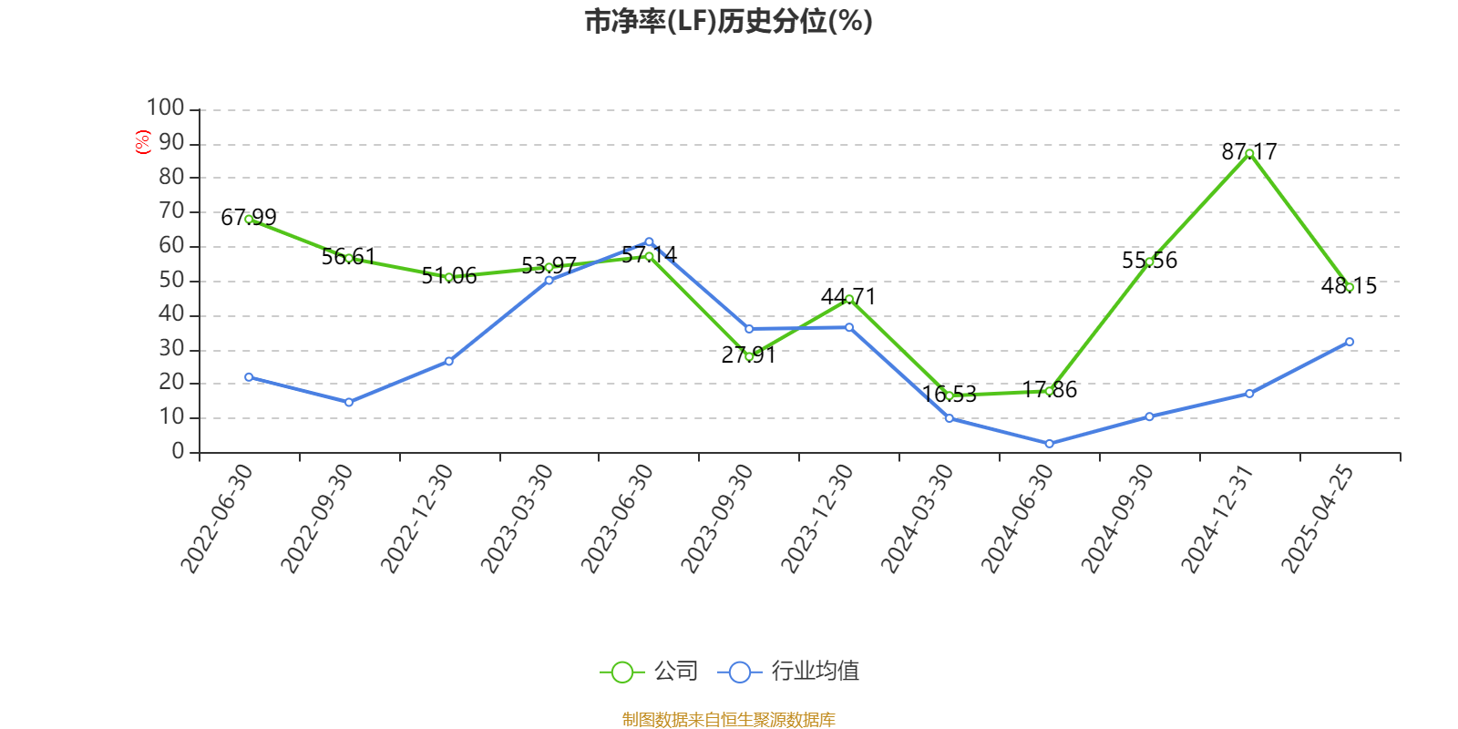 市盈率、市净率为负时,不显示当期分位数,会导致折线图中断。