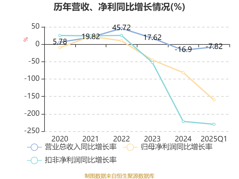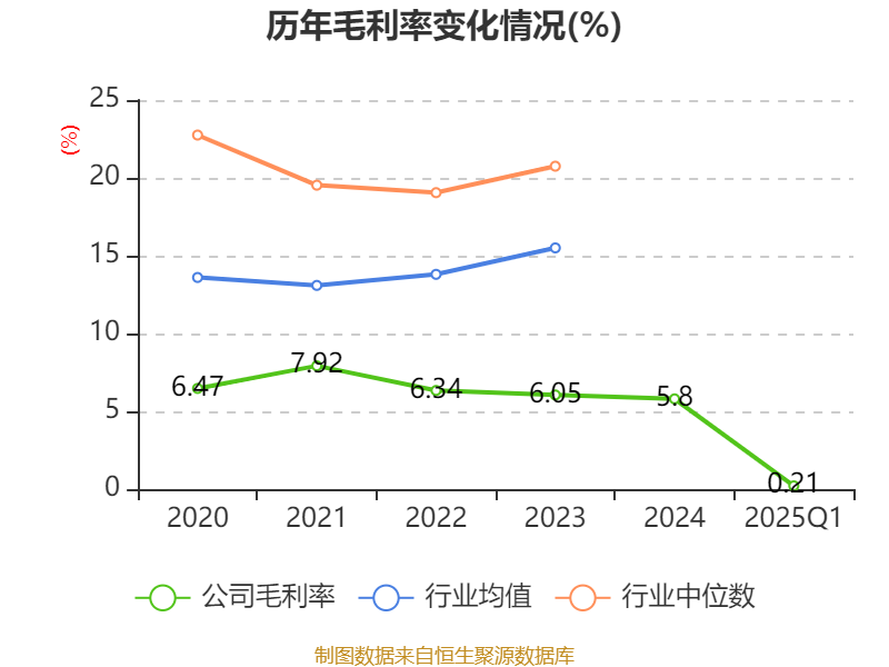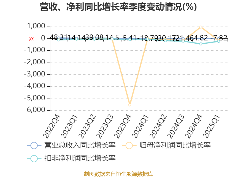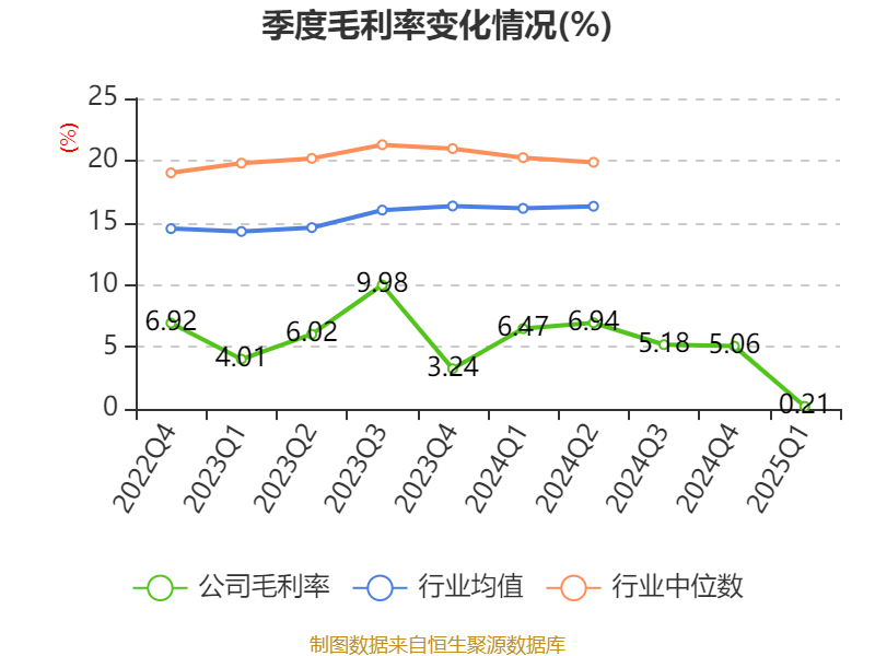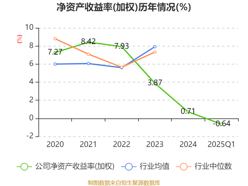 盈利能力方面, 2025年一季度公司加权平均净资产收益率为-0.64%,同比下降1.69个百分点。公司2025年第一季度投入资本回报率为-0.77%,较上年同期下降1.33个百分点。