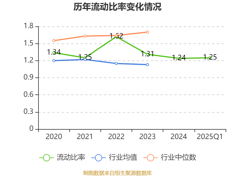 2025年第一季度,公司流动比率为1.25,速动比率为1。