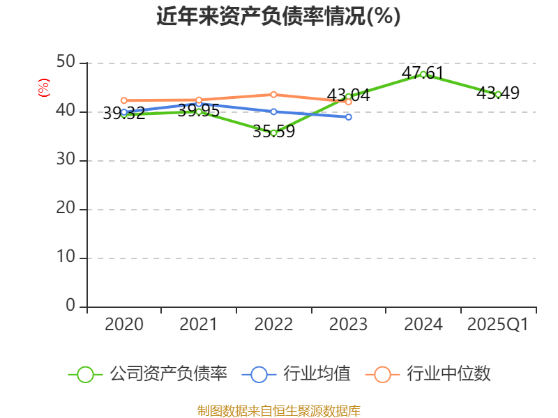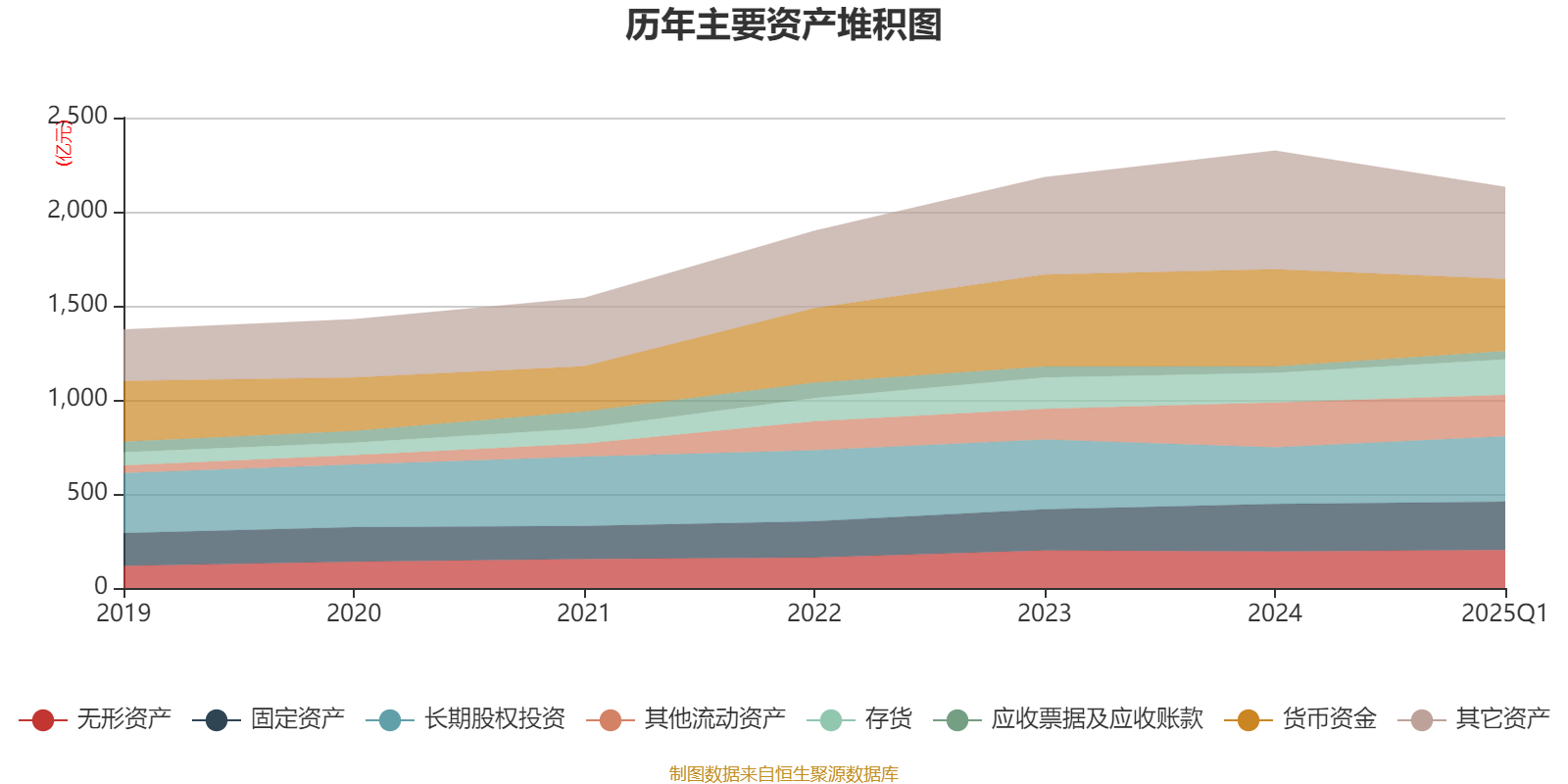 资产重大变化方面,截至2025年一季度末,公司货币资金较上年末减少25.7%,占公司总资产比重下降4.21个百分点;长期股权投资较上年末增加15.53%,占公司总资产比重上升3.37个百分点;长期应收款较上年末减少99.65%,占公司总资产比重下降2.92个百分点;存货较上年末增加20.58%,占公司总资产比重上升2.13个百分点。