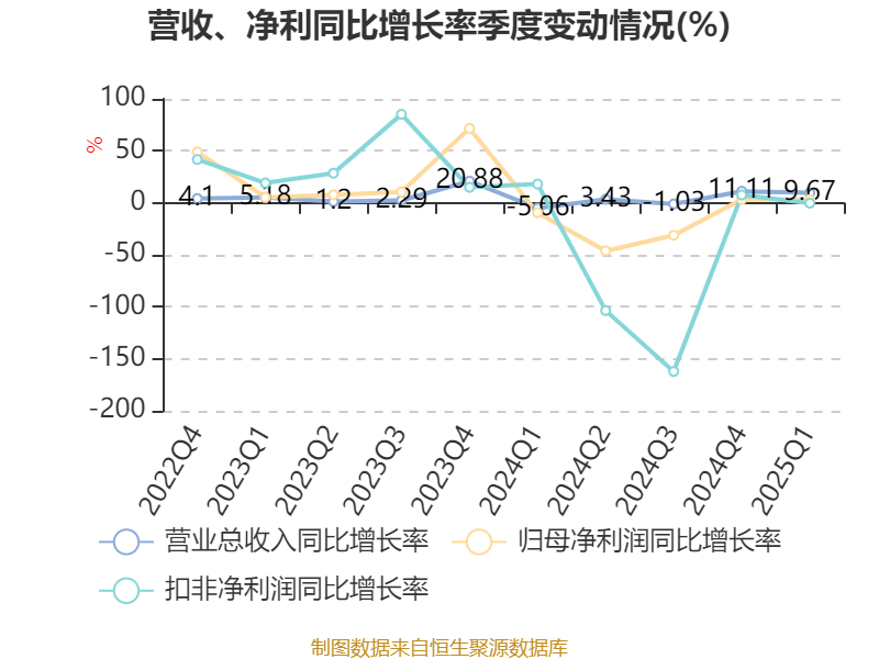 负债重大变化方面,截至2025年一季度末,公司短期借款较上年末增加13.86%,占公司总资产比重上升1.6个百分点;应付票据及应付账款较上年末减少31.13%,占公司总资产比重下降1.2个百分点;其他应付款(含利息和股利)较上年末减少23.17%,占公司总资产比重下降0.88个百分点;合同负债较上年末增加20.13%,占公司总资产比重上升0.33个百分点。