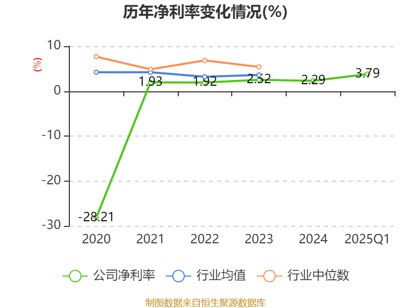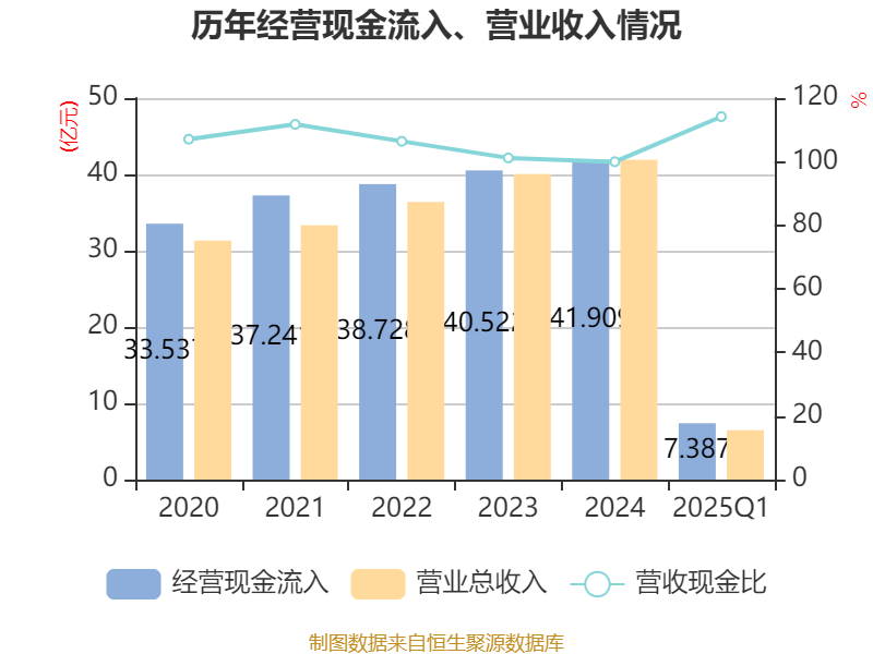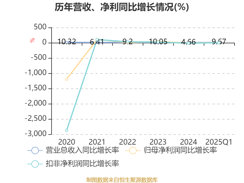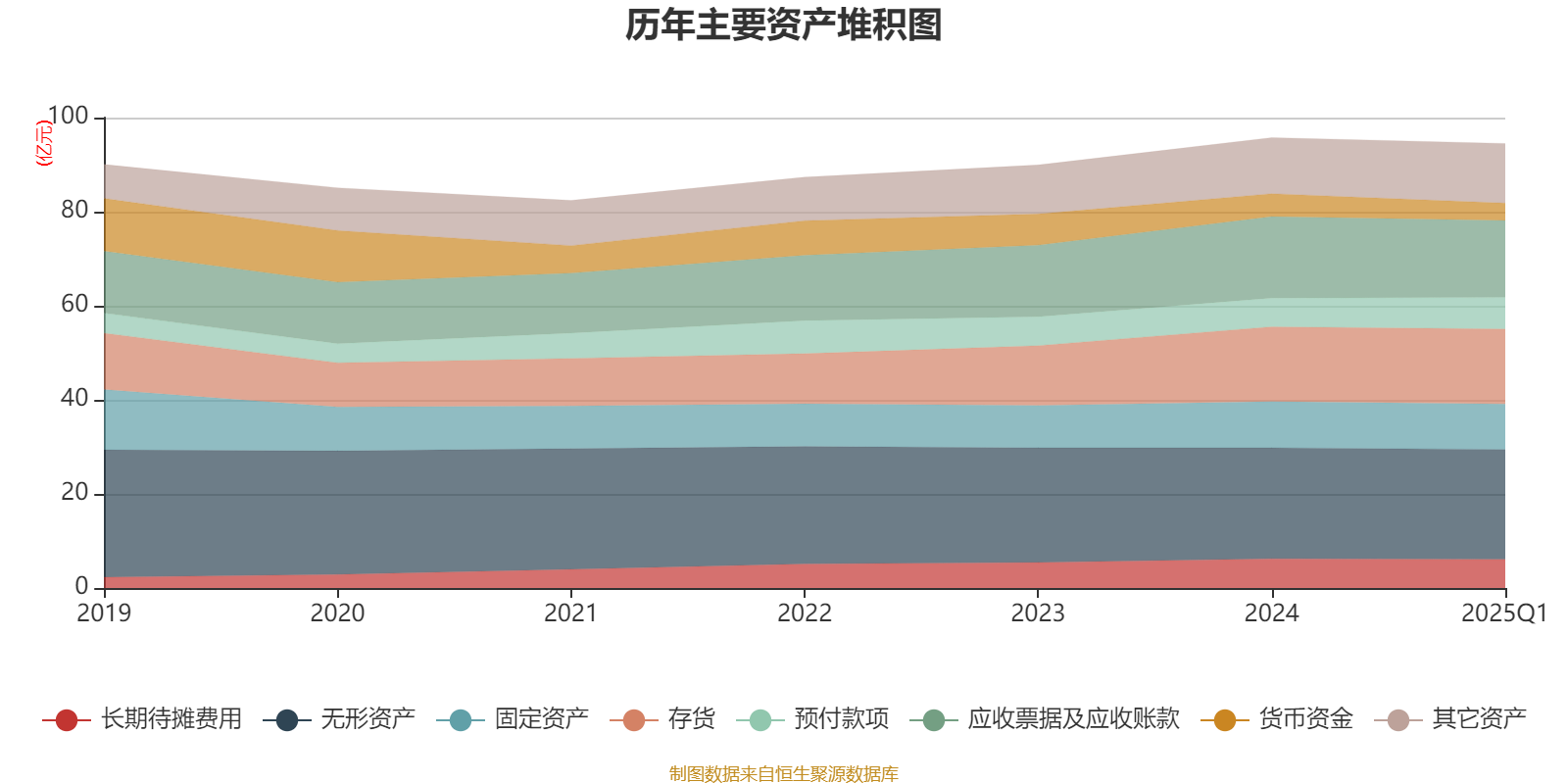 资产重大变化方面,截至2025年一季度末,公司货币资金较上年末减少24.41%,占公司总资产比重下降1.19个百分点;在建工程合计较上年末增加26.63%,占公司总资产比重上升0.86个百分点;应收票据及应收账款较上年末减少5.67%,占公司总资产比重下降0.8个百分点;预付款项较上年末增加10.87%,占公司总资产比重上升0.78个百分点。