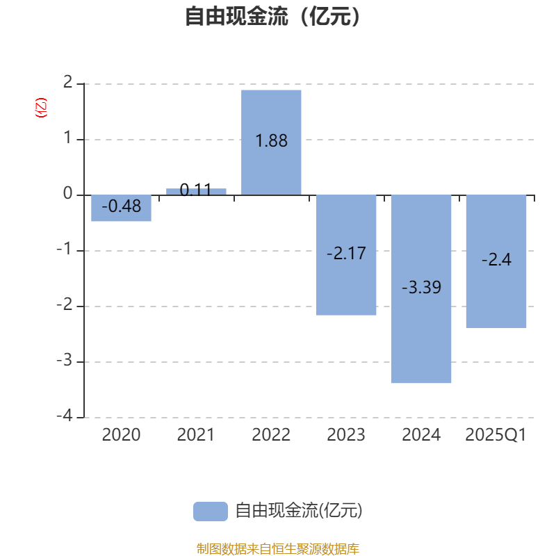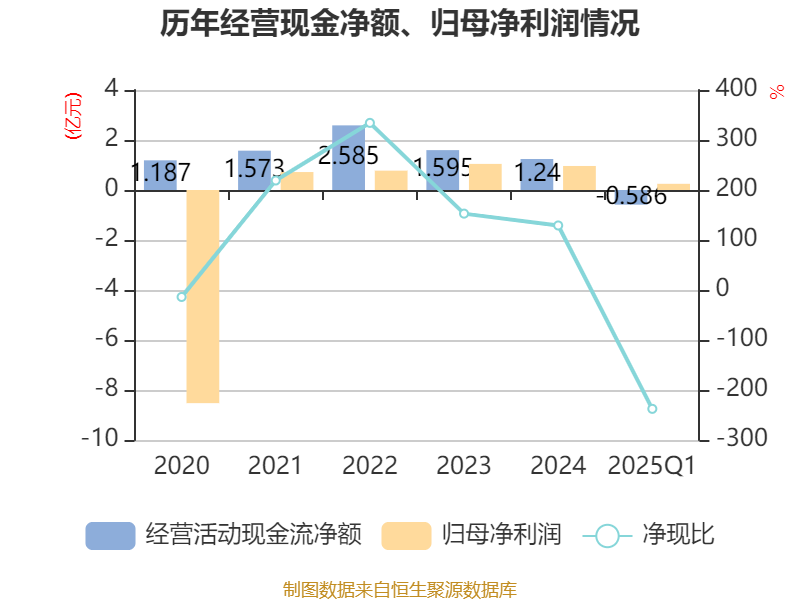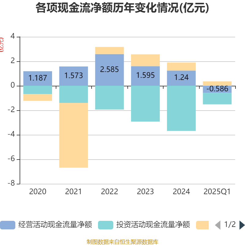 截至2025年一季度末,公司经营活动现金流净额为-5860.56万元,同比减少6280.86万元;筹资活动现金流净额3572.39万元,同比增加9733.19万元;投资活动现金流净额-9305.95万元,上年同期为-3796.14万元。