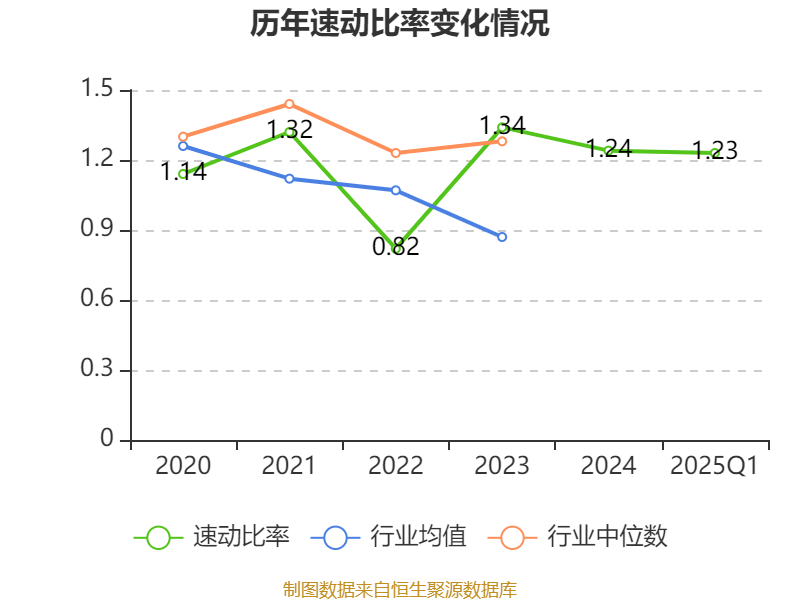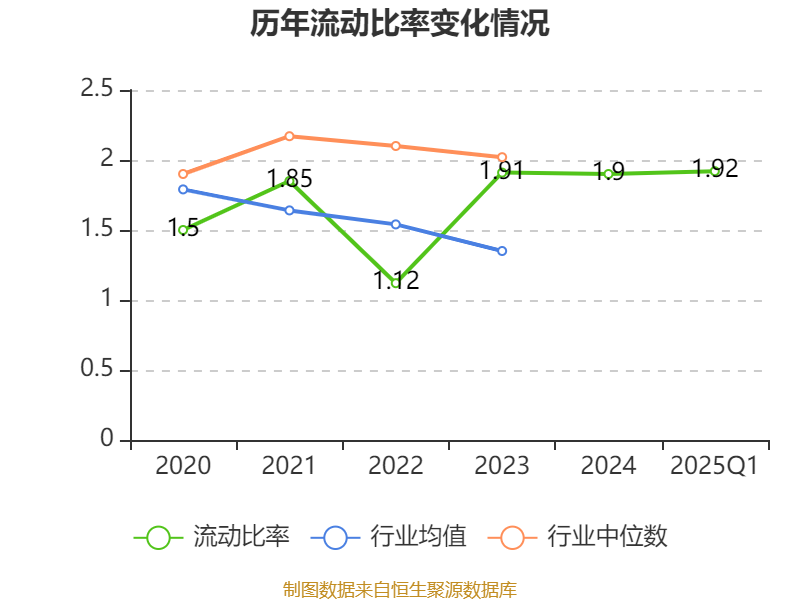 2025年第一季度,公司流动比率为1.92,速动比率为1.23。
