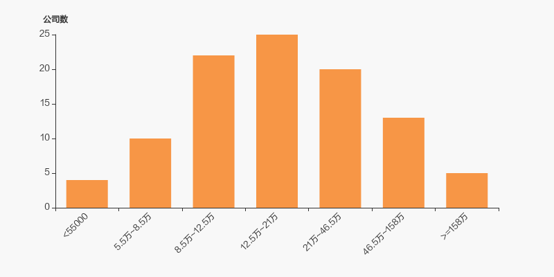 四川长虹股东户数高于行业平均水平。根据Choice数据,截至2025年3月31日家用电器行业上市公司平均股东户数为4.38万户。其中,公司股东户数处于2.5万~4万区间占比最高,为21.00%。