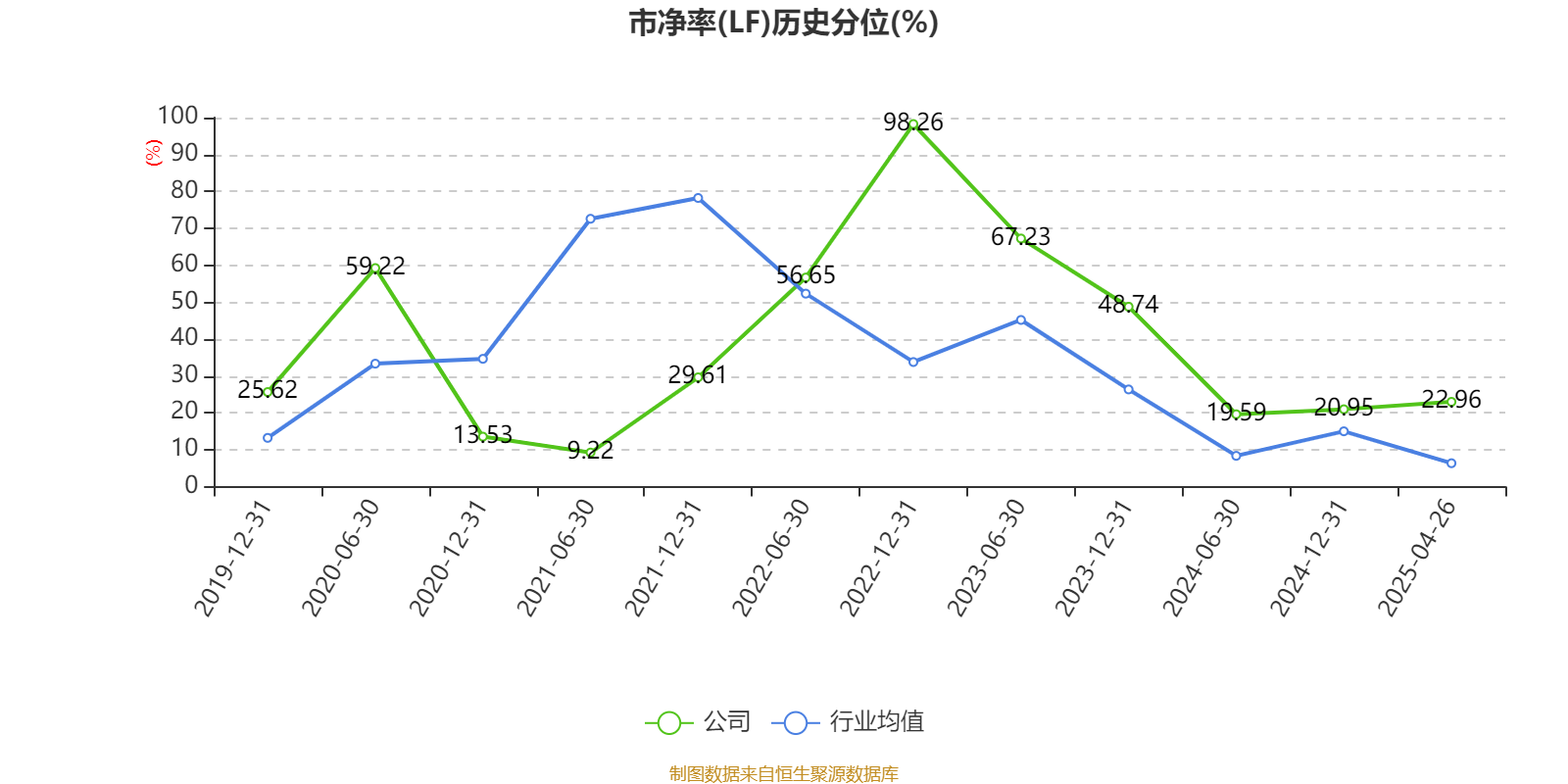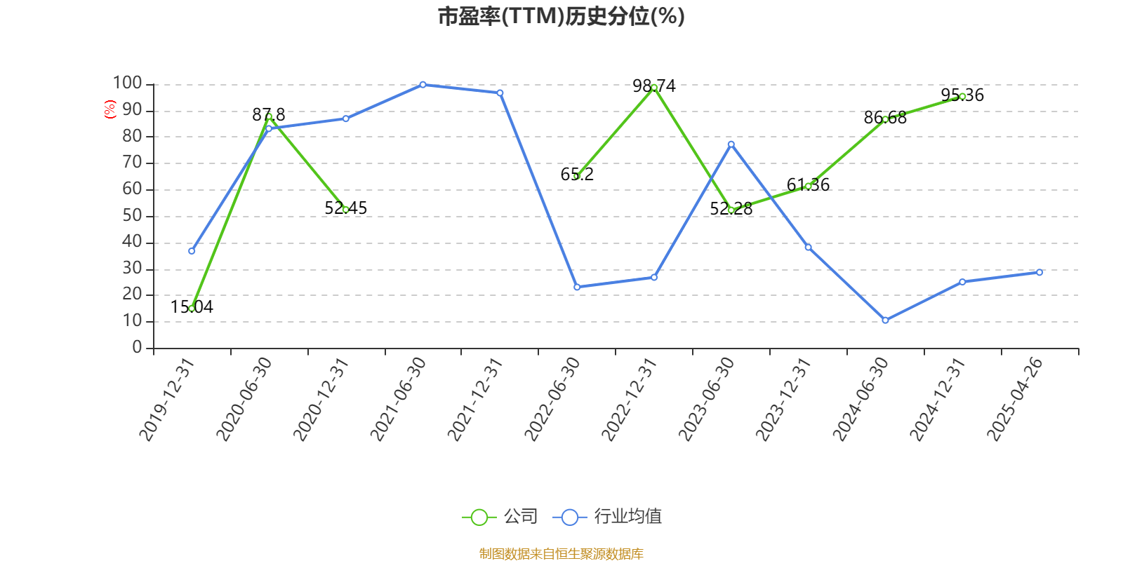 市盈率、市净率为负时,不显示当期分位数,会导致折线图中断。