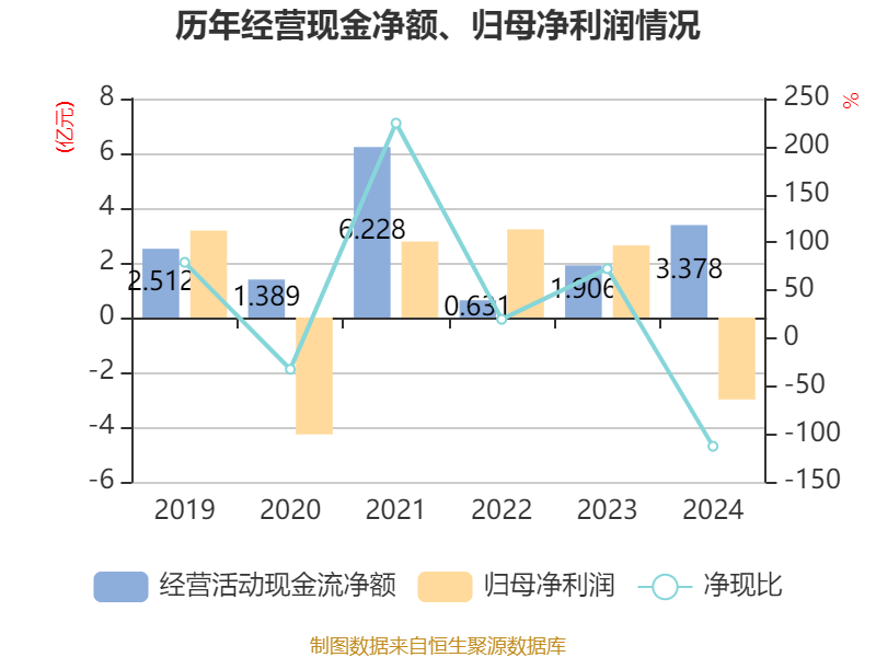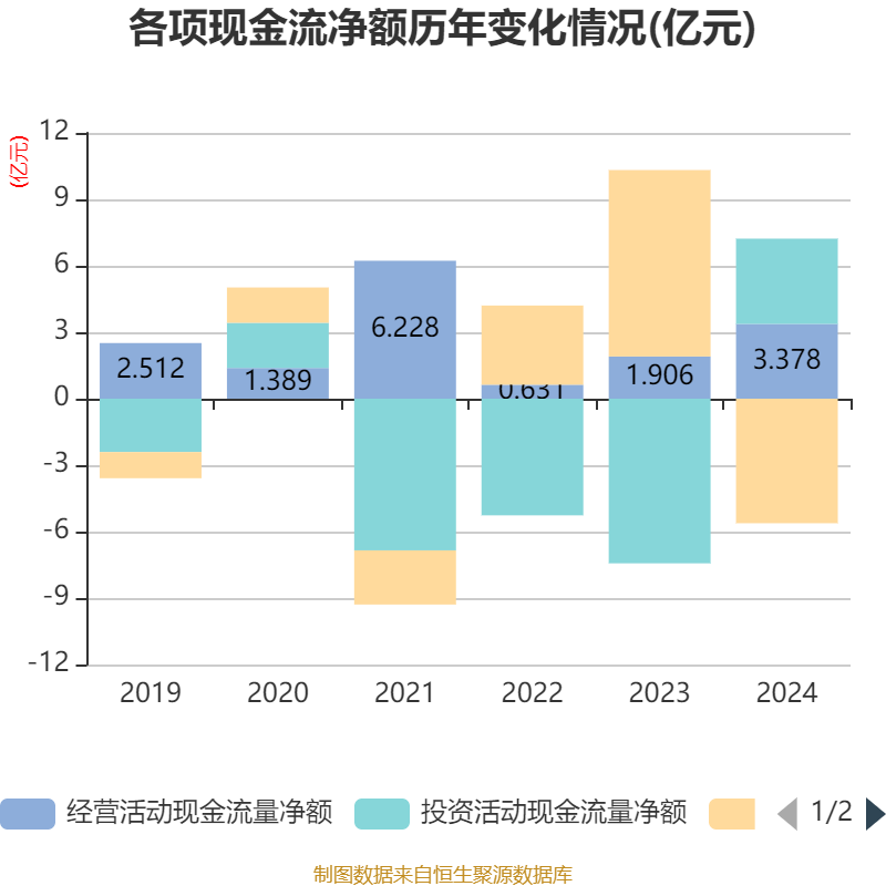 截至2024年,公司经营活动现金流净额为3.38亿元,同比增长77.24%;筹资活动现金流净额-5.62亿元,同比减少14.04亿元;投资活动现金流净额3.85亿元,上年同期为-7.43亿元。