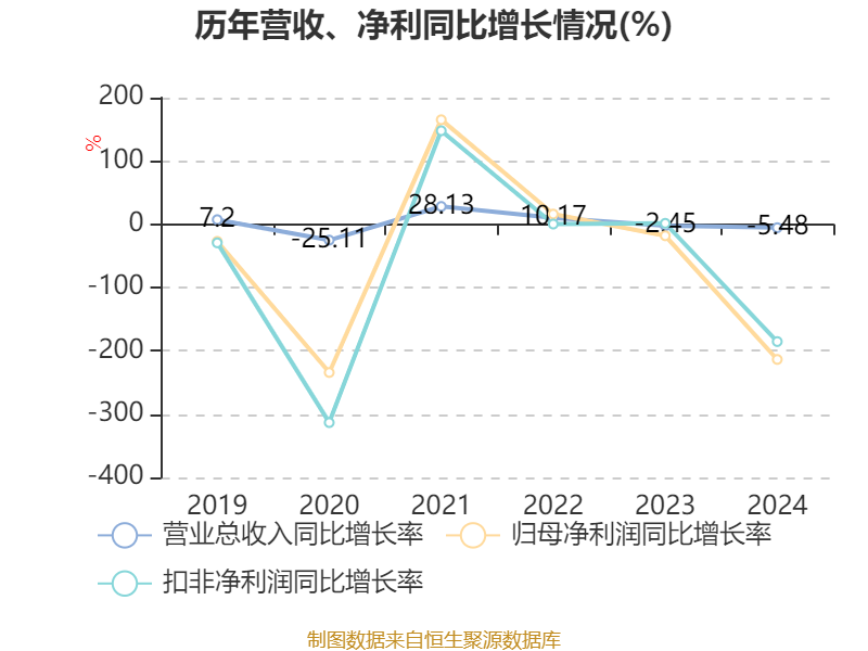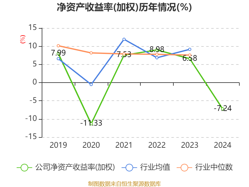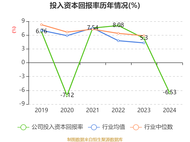 数据显示,2024年公司加权平均净资产收益率为-7.24%,较上年同期下降13.82个百分点。公司2024年投入资本回报率为-6.53%,较上年同期下降11.83个百分点。