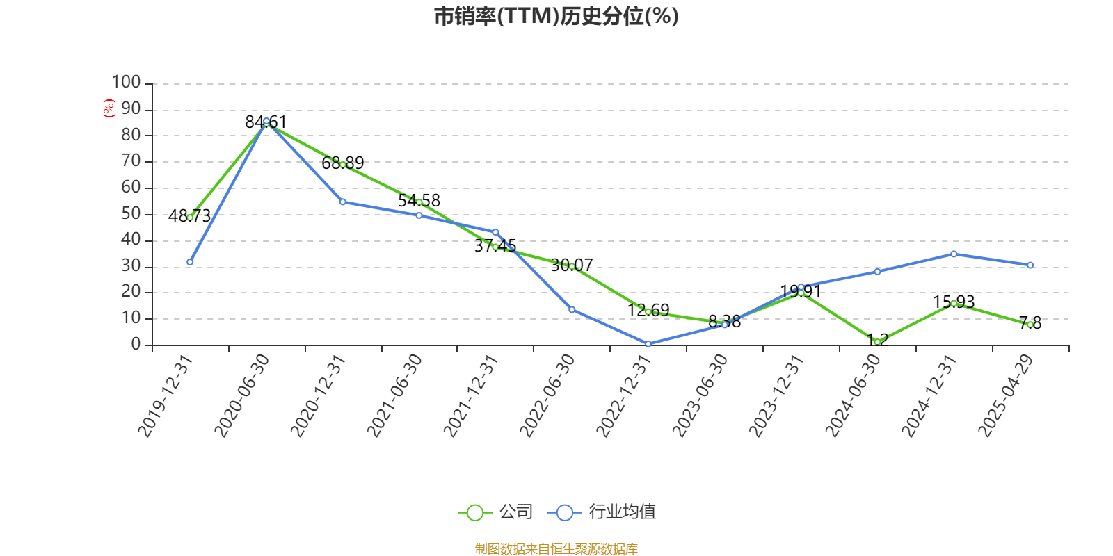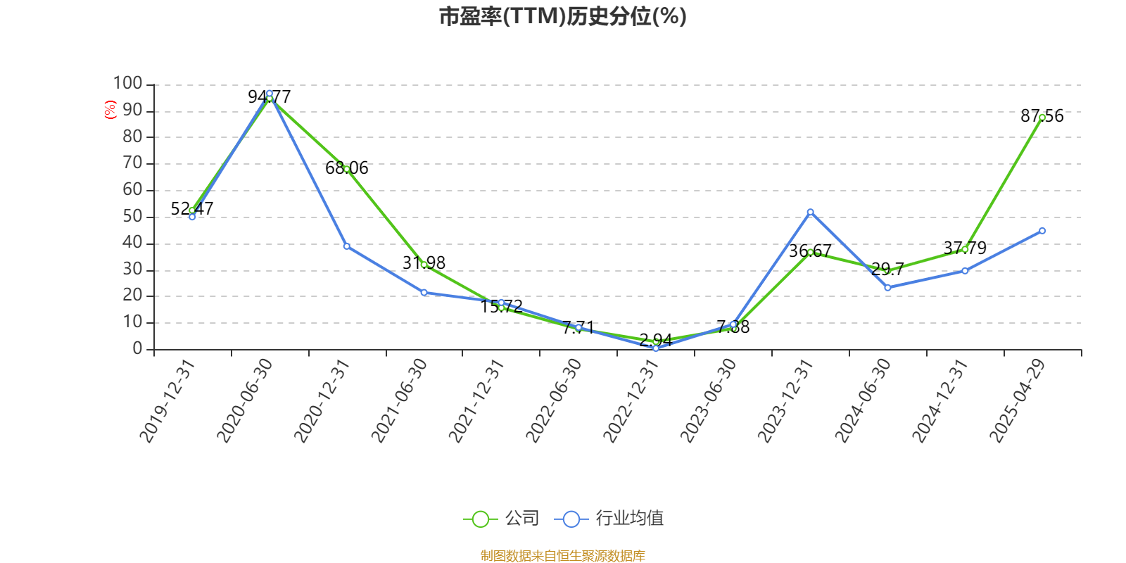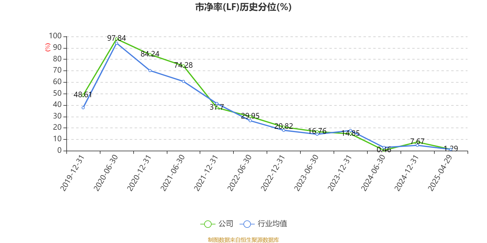 市盈率、市净率为负时,不显示当期分位数,会导致折线图中断。