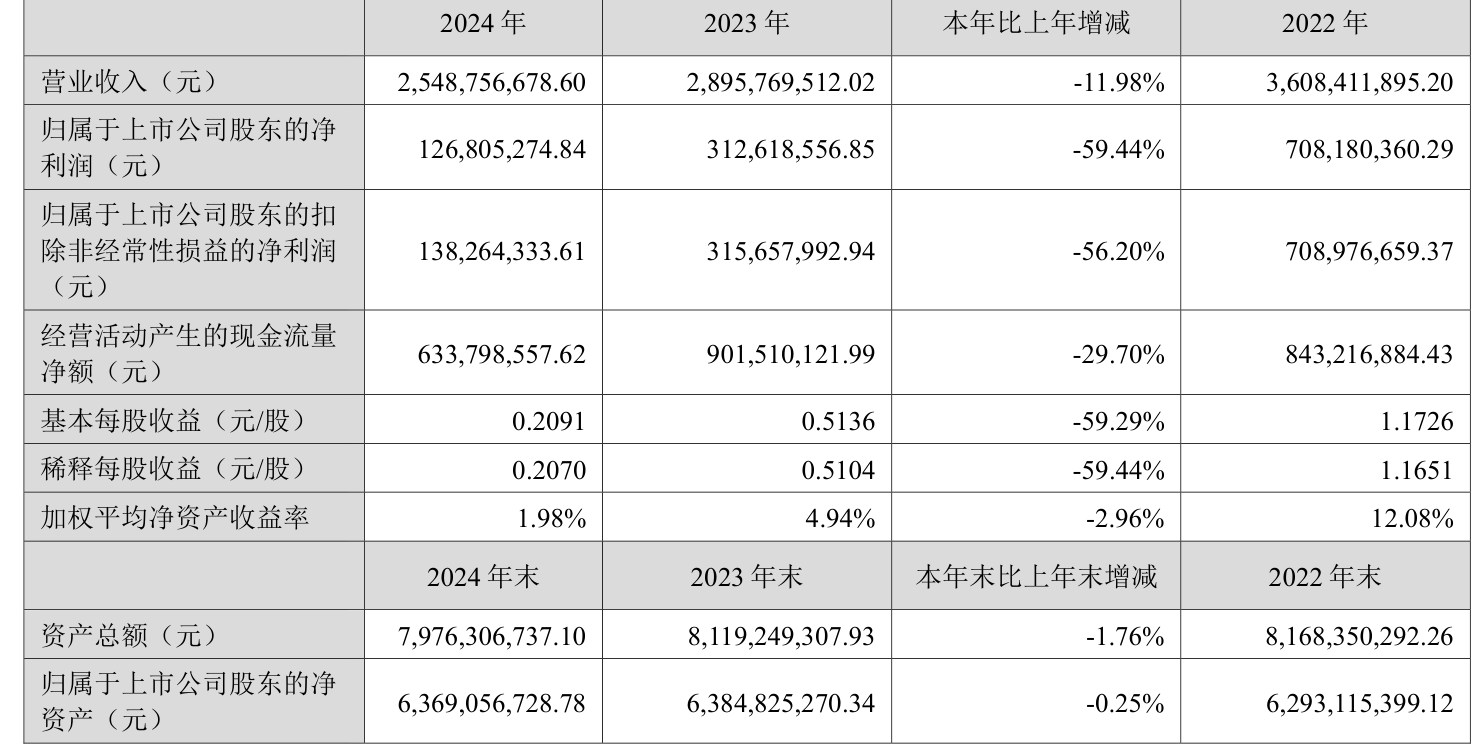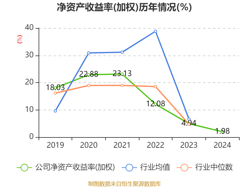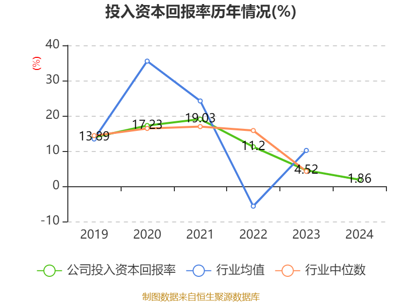 数据显示,2024年公司加权平均净资产收益率为1.98%,较上年同期下降2.96个百分点。公司2024年投入资本回报率为1.86%,较上年同期下降2.66个百分点。