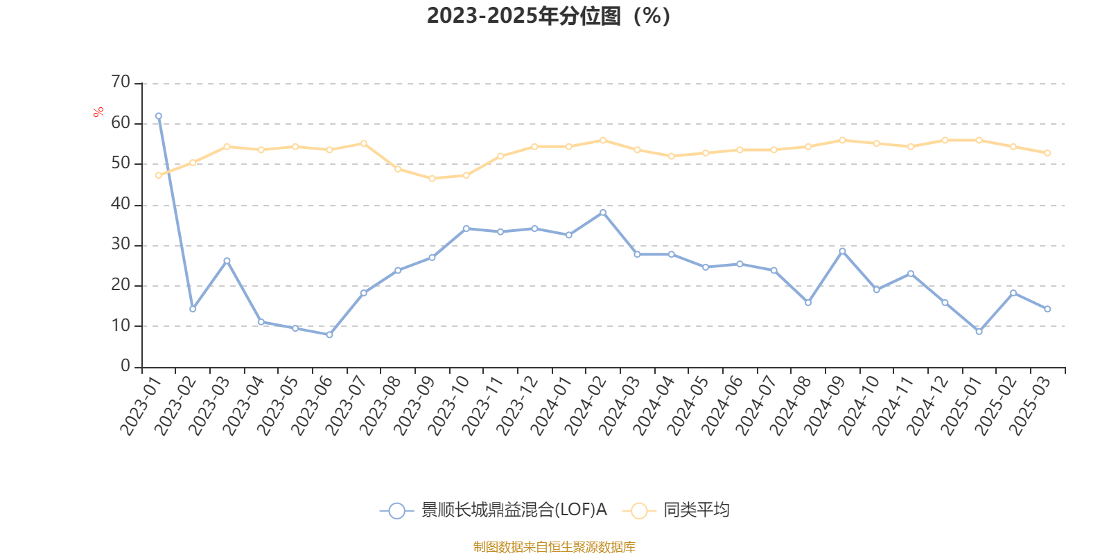 通过所选区间该基金净值增长率分位图,可以观察该基金与同类基金业绩比较情况。图为坐标原点到区间内某时点的净值增长率在同类基金中的分位数。