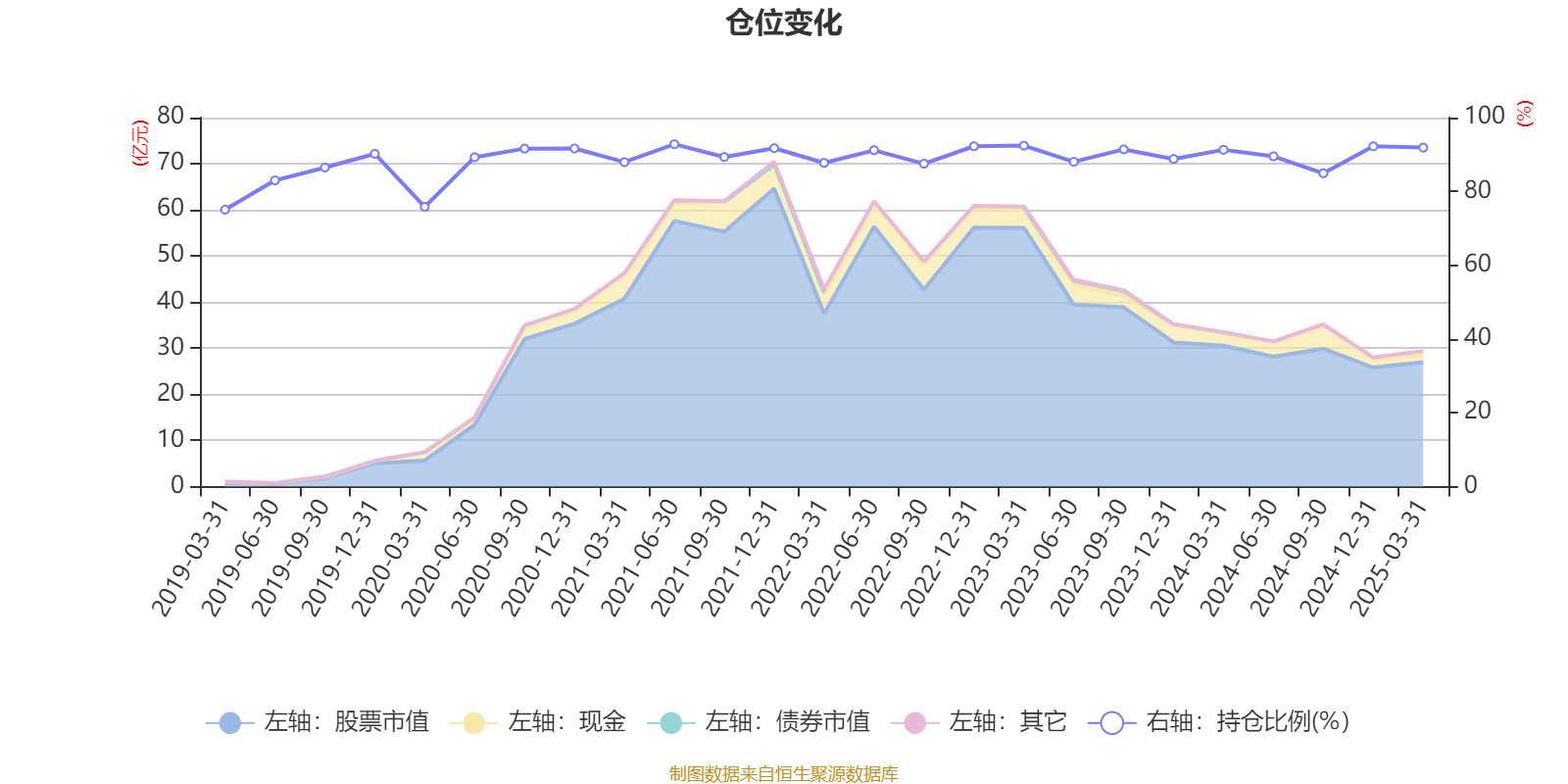 据定期报告数据统计,近三年平均股票仓位为90.11%,同类平均为85.79%。2021年上半年末基金达到92.78%的最高仓位,2019年一季度末最低,为75.05%。