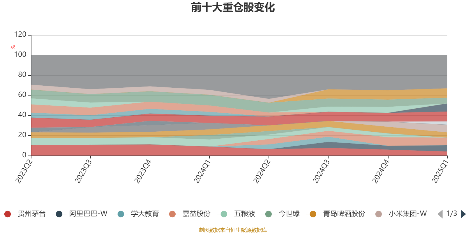 该基金持股集中度较高,且持股标的较为稳定。截至2025年一季度末,基金十大重仓股分别是腾讯控股、美的集团、泡泡玛特、嘉益股份、小米集团-W、阿里巴巴-W、泸州老窖、青岛啤酒股份、贵州茅台、格力电器。