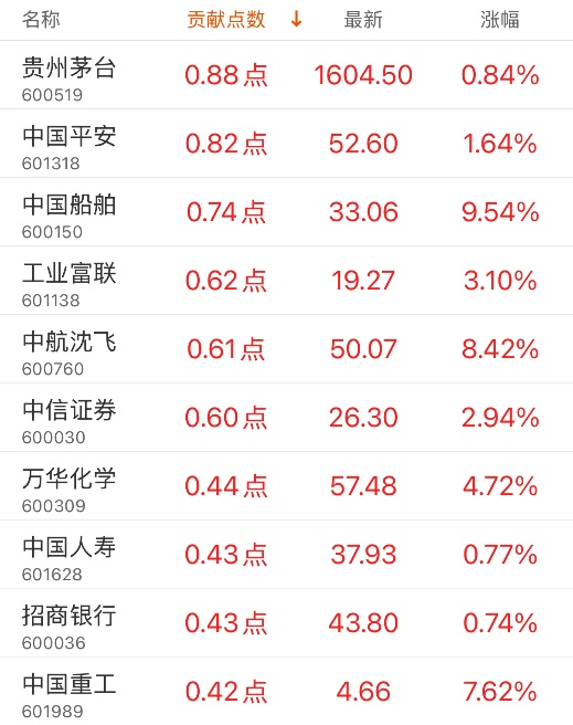 指数贡献榜:中航成飞贡献24.18点