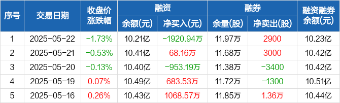2025年5月22日信达证券融资净偿还1920.94万元,融资余额10.21亿元