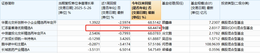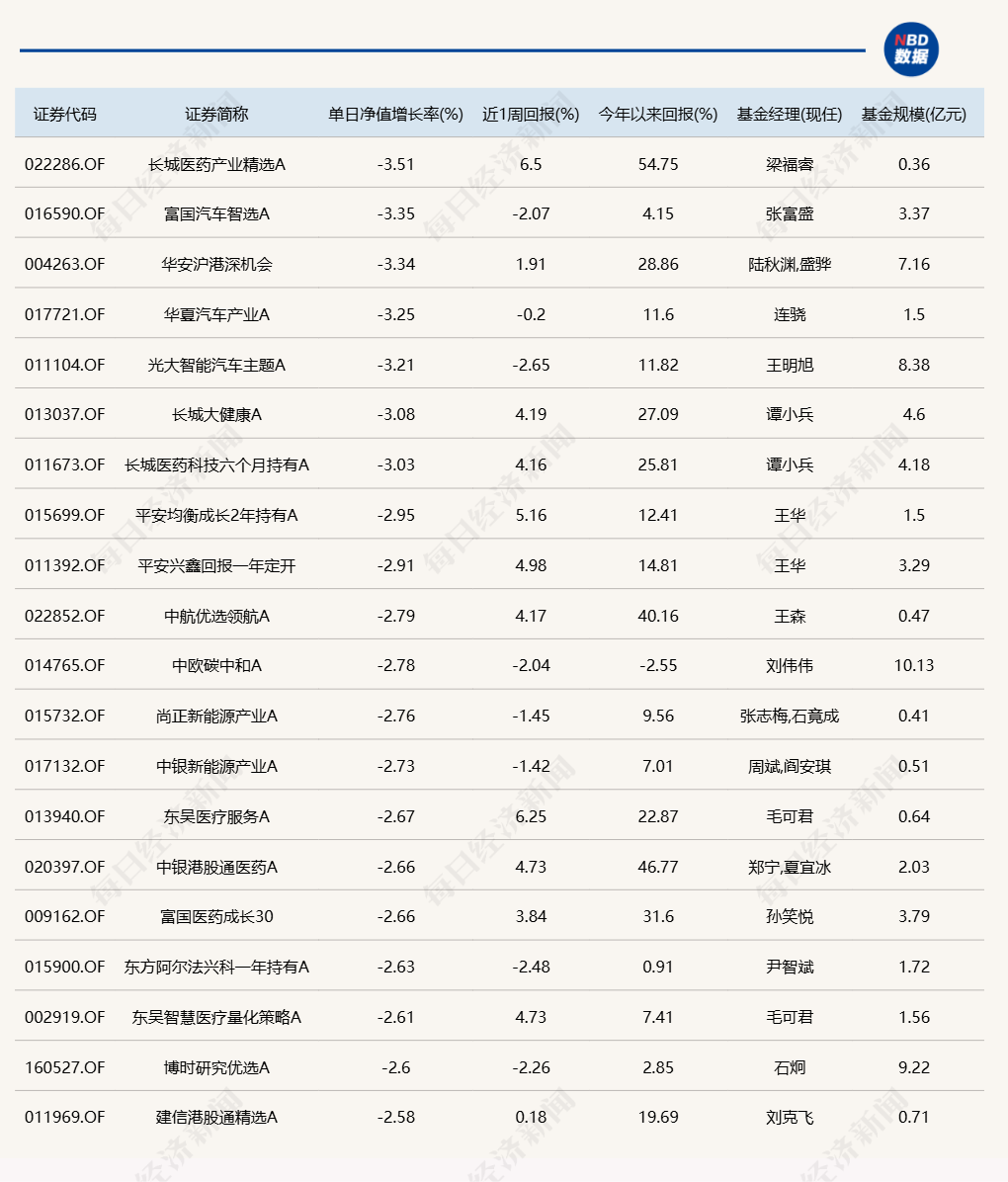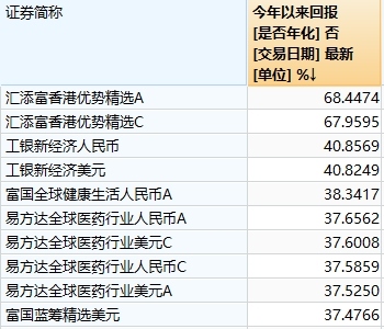 值得注意的是,上周五短暂且罕见登顶年内收益榜的QDII产品——汇添富香港优势精选,虽然截至发稿最新净值尚未披露,但考虑到港股市场今日走弱,其重仓的港股医药股也纷纷下跌,业绩很可能出现回落。