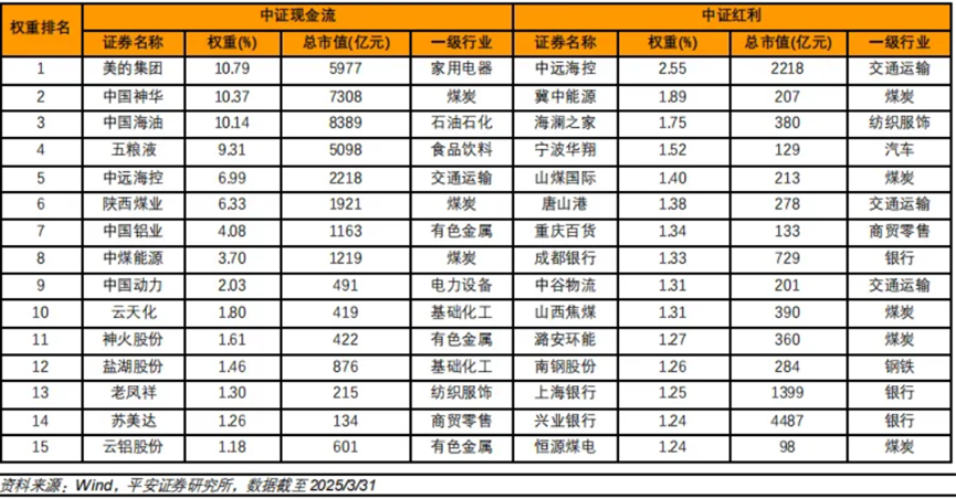 指数表现的差异,主要源自行业分布和权重股的不同。从指数成分股构成看,中证红利指数在钢铁、煤炭、银行三个行业上分布了较大权重,而中证自由现金流指数在家电、食品饮料、交运、商贸等行业上的权重较大,前者的周期性高于后者,这也在一定程度上解释了两者长期业绩表现差异的原因。