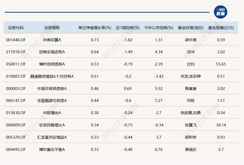 3.单日债基涨跌幅榜