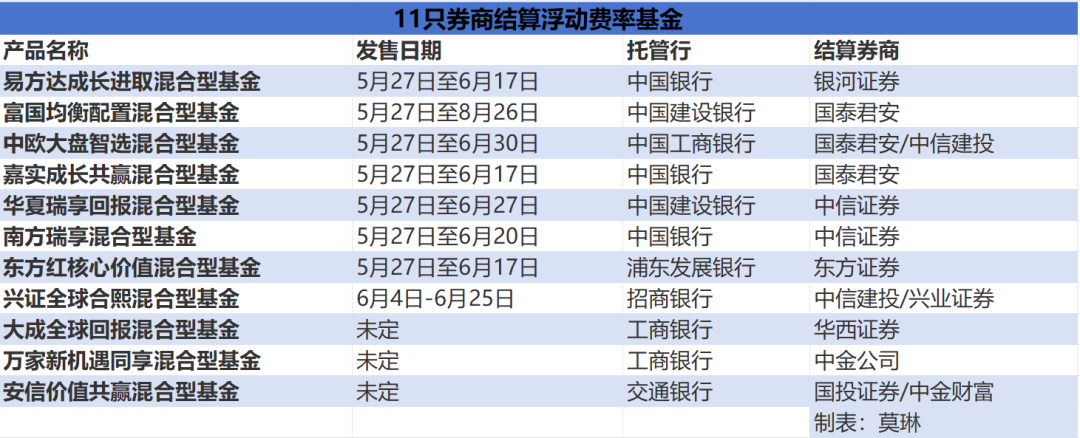 在此次开售的16只新型浮动费率基金中,有7只产品采取了券商结算模式。据记者统计,首批26只浮动费率产品中,将有11只采取券商结算模式。