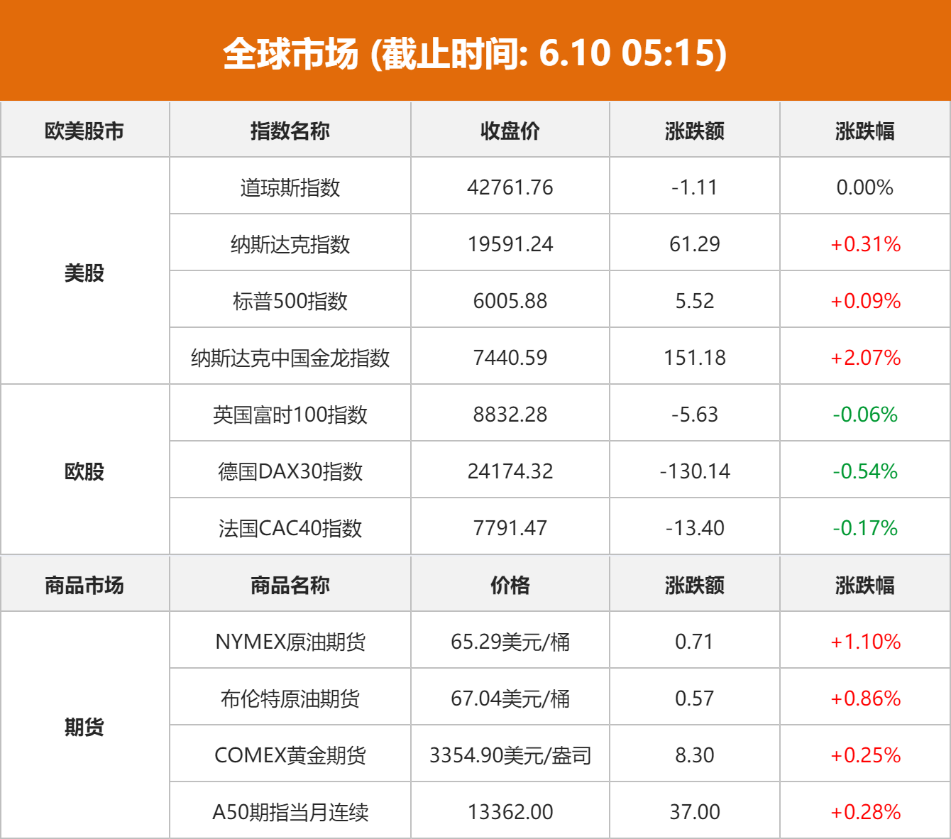 美股市场:美股三大指数06月09日收盘涨跌不一。截至收盘,道琼斯工业平均指数比前一交易日下跌1.11点,收于42761.76点;标准普尔500种股票指数上涨5.52点,收于6005.88点,涨幅为0.09%;纳斯达克综合指数上涨61.29点,收于19591.24点,涨幅为0.31%。