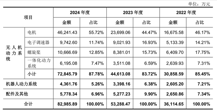 该公司主营无人机电动动力系统及机器人动力系统,市场份额仅次于大疆,位列全球第二。招股说明书显示,公司拳头产品电机的销售单价报告期内走跌,尤其2024年降价幅度达4成,公司后续经营情况有待持续观察。