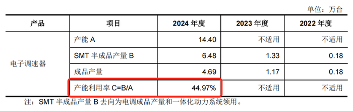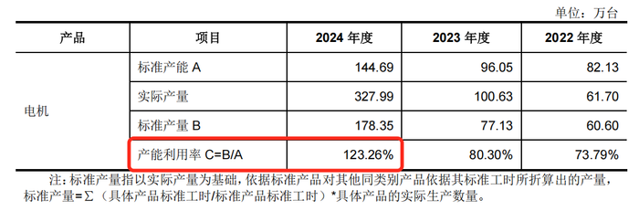 需要指出的是,说明书在“发行人竞争优势”中提及“目前公司拥有8条产线,年产185万台电机、50万台电子调速器、20万支碳纤桨的生产能力”;与在“主要产品的产能、产量和销售情况”中提及的2024年电机标准产能144.69万台、电子调速器14.4万台、螺旋桨-碳纤桨7.75万支等数据有一定出入。