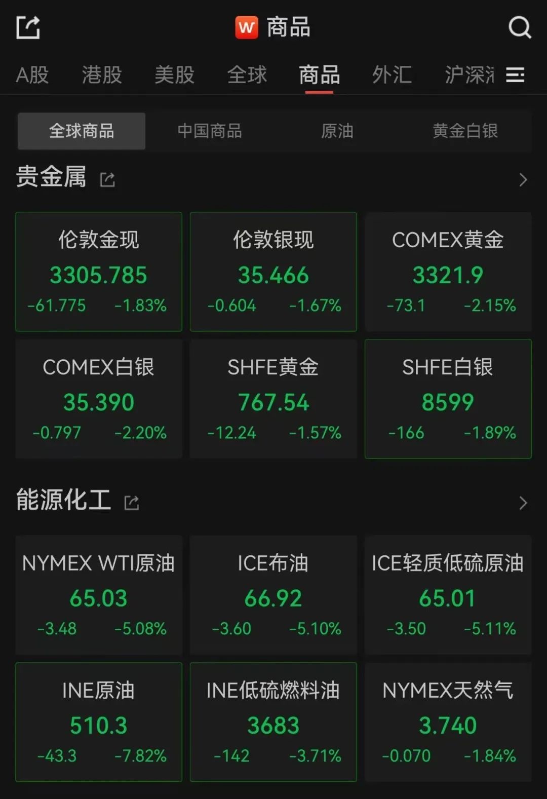 国际金价以及原油价格加速下跌。截至北京时间22:48,COMEX黄金期货、COMEX白银期货价格均跌逾2%,伦敦金、伦敦银现货价格下挫逾1%;美油主力合约、布伦特原油主力合约均跌超5%。