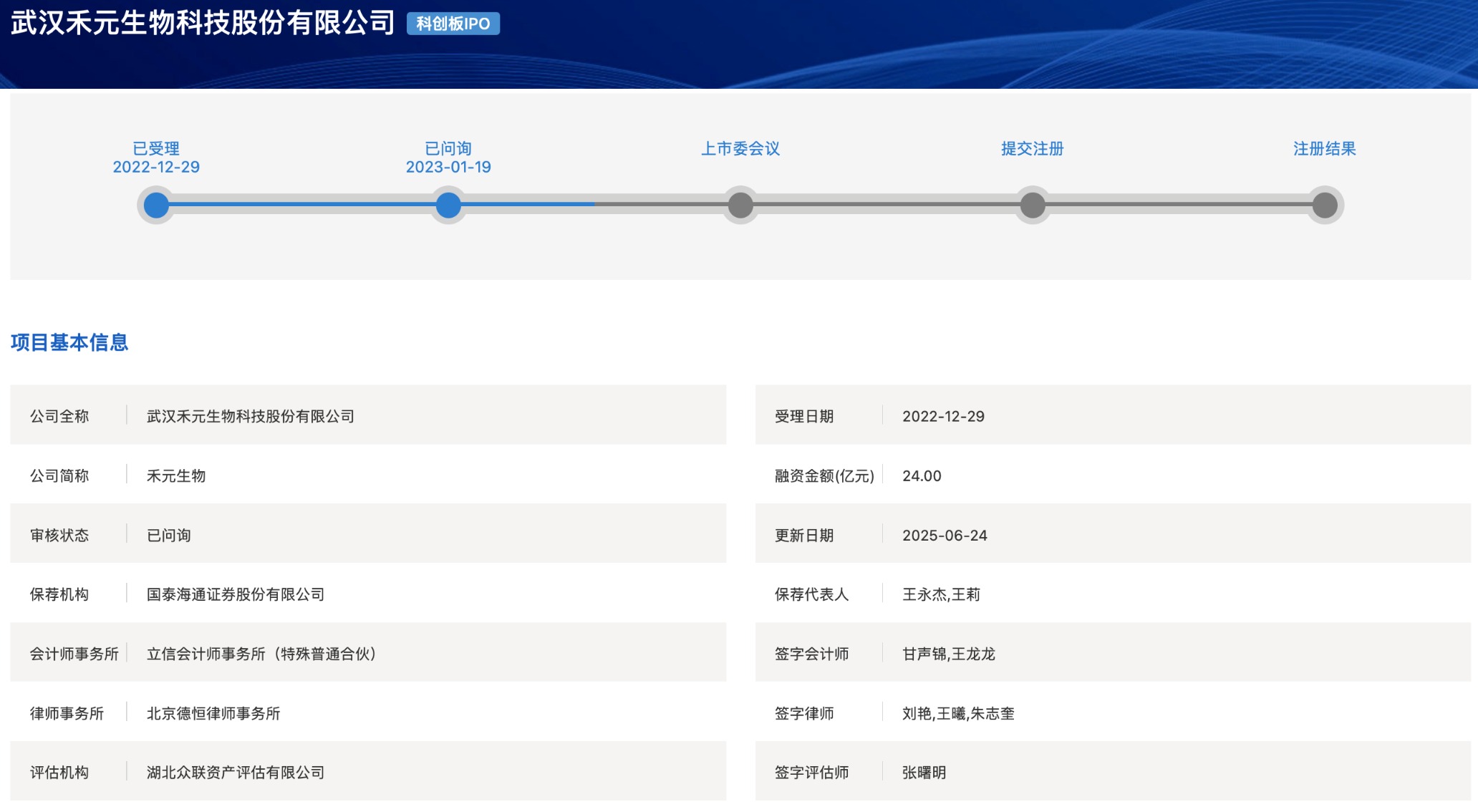 信息显示,禾元生物科创板IPO于2022年12月29日获得受理;2023年1月19日,公司收到首轮问询函,2023年7月至2024年12月期间,禾元生物进行了两轮审核问询回复。