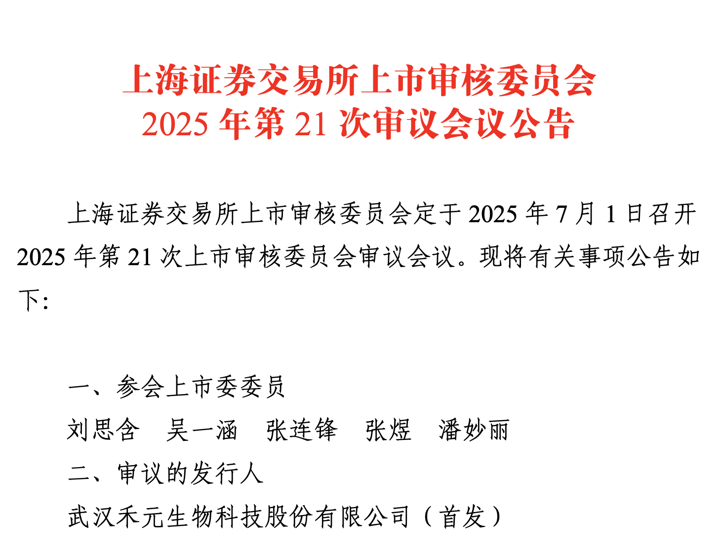 上交所上市审核委员会将于7月1日审议科创板IPO企业武汉禾元生物科技股份有限公司(下称“禾元生物”)的发行上市申请。
