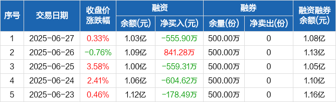 2025年6月27日创业50ETF融资净偿还555.9万元,融资余额1.03亿元