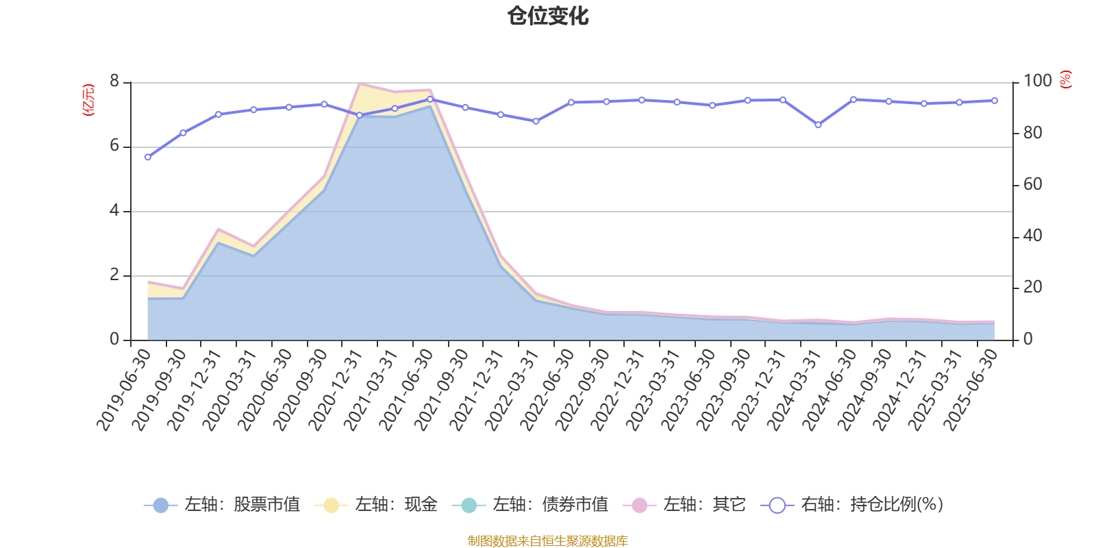 据定期报告数据统计,近三年平均股票仓位为91.76%,同类平均为83.27%。2021年上半年末基金达到93.42%的最高仓位,2019年上半年末最低,为70.97%。