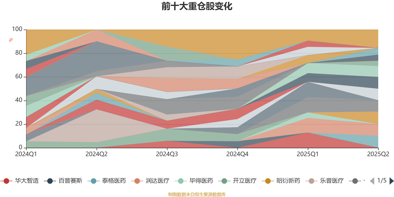 该基金持股集中度较高。截至2025年二季度末,基金十大重仓股分别是昭衍新药、泰格医药、润达医疗、热景生物、药明康德、一品红、康弘药业、长春高新、大参林、浩欧博。