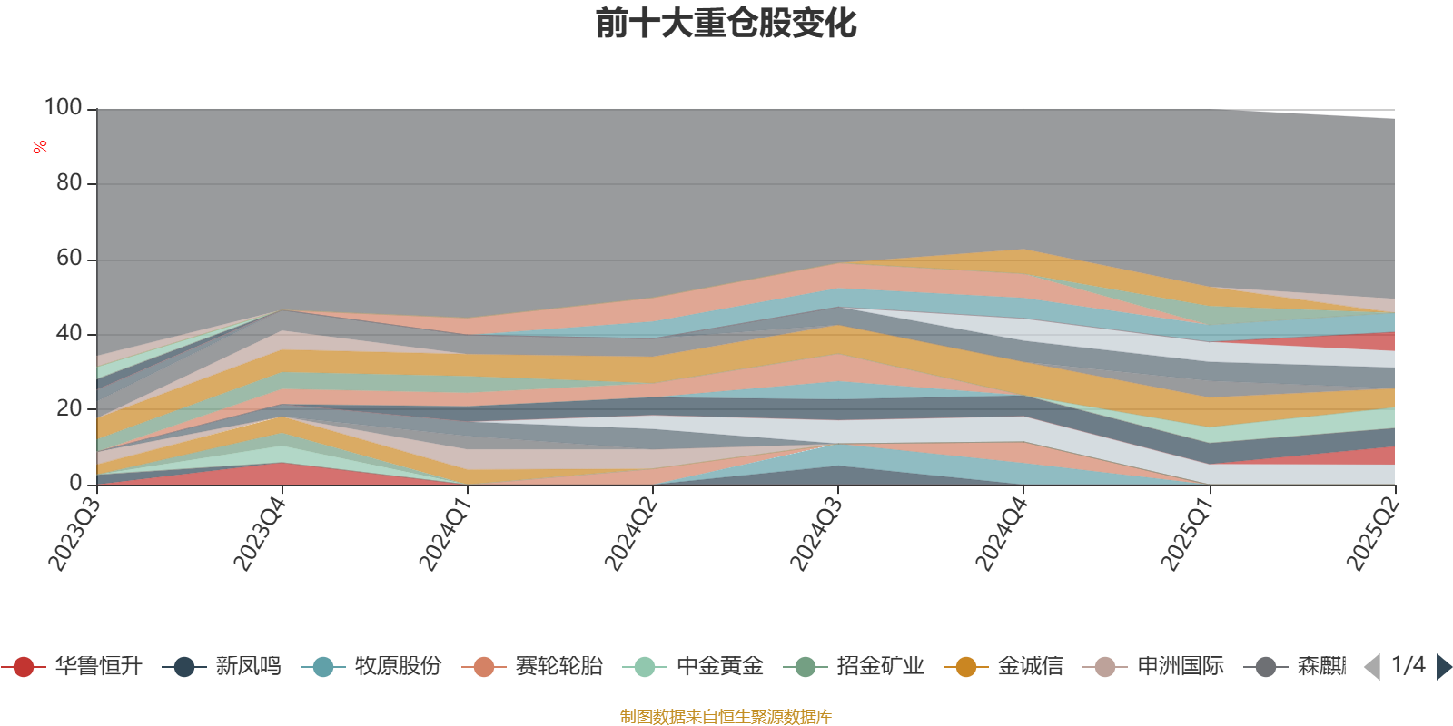 截至2025年二季度末,基金十大重仓股分别是中国宏桥、德康农牧、TCL科技、圣泉集团、晶苑国际、华利集团、三环集团、生益科技、聚合顺、中国铝业。