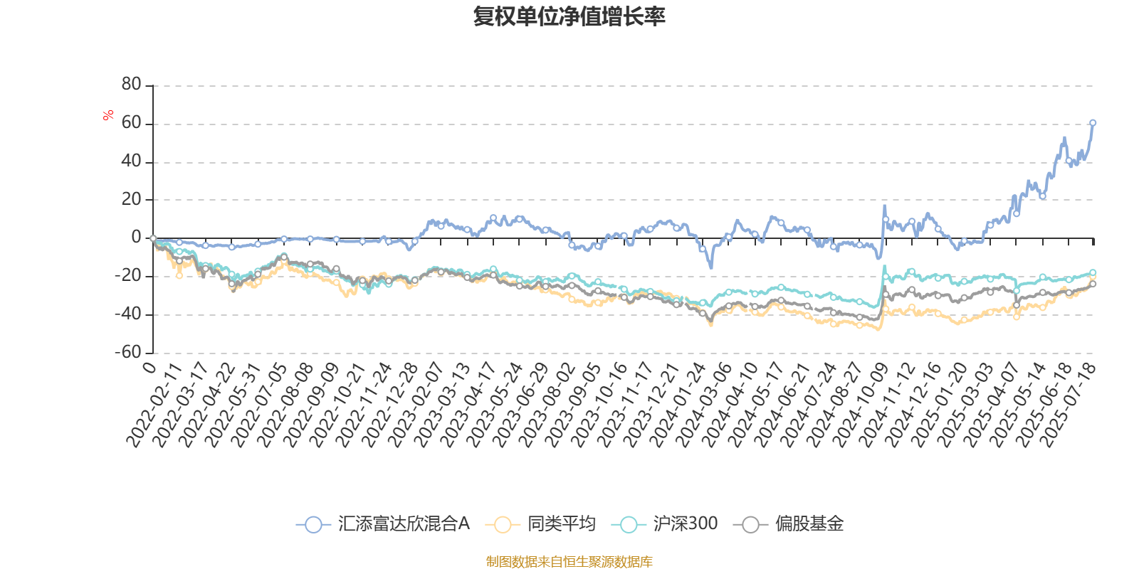 截至7月18日,汇添富达欣混合A近三个月复权单位净值增长率为31.83%,位于同类可比基金54/138;近半年复权单位净值增长率为65.82%,位于同类可比基金24/138;近一年复权单位净值增长率为60.82%,位于同类可比基金27/133;近三年复权单位净值增长率为60.63%,位于同类可比基金1/107。