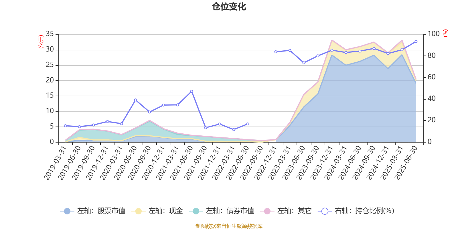 据定期报告数据统计,近三年平均股票仓位为76.98%,同类平均为86.95%。2025年上半年末基金达到93.37%的最高仓位,2022年一季度末最低,为11.65%。