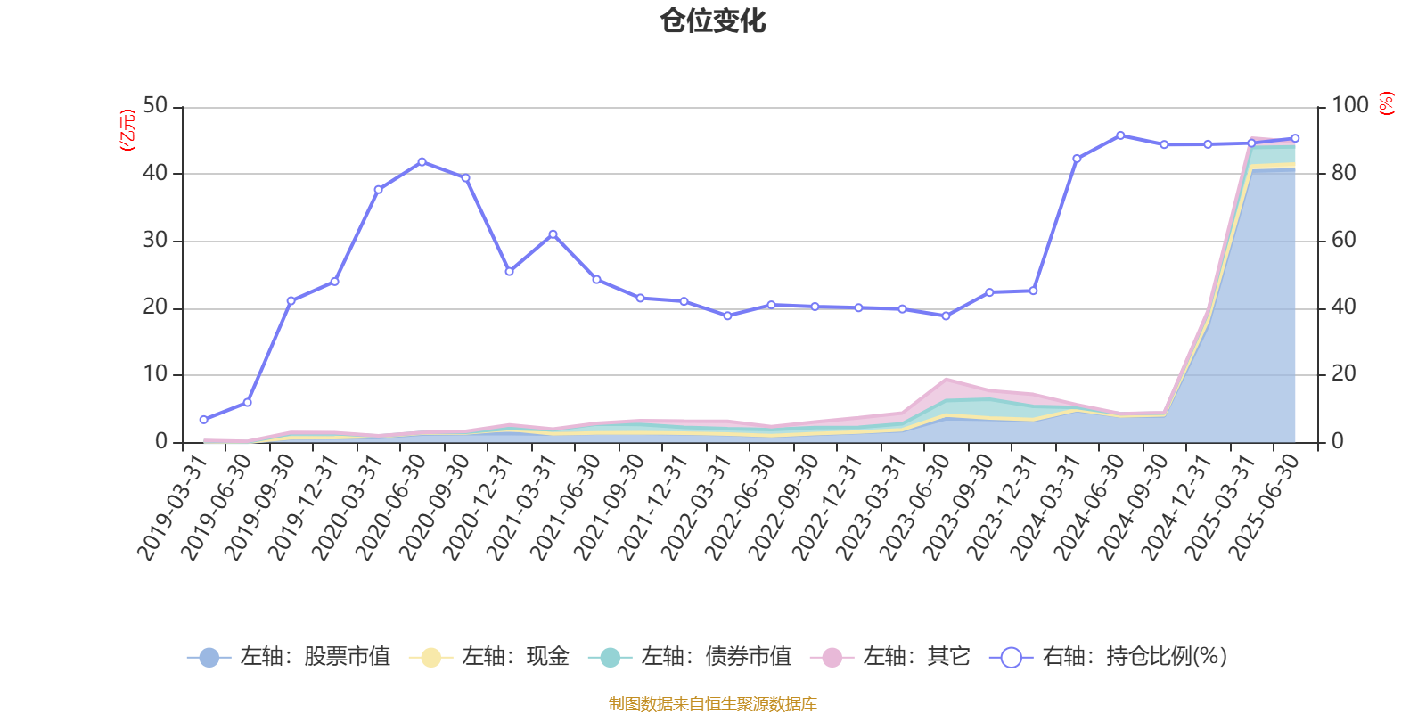 据定期报告数据统计,近三年平均股票仓位为65.16%,同类平均为85.8%。2024年上半年末基金达到91.52%的最高仓位,2019年一季度末最低,为6.8%。