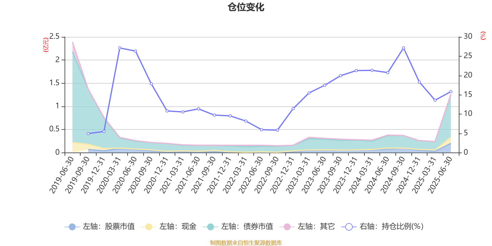 据定期报告数据统计,近三年平均股票仓位为17.37%,同类平均为18.92%。2024年三季度末基金达到27.15%的最高仓位,2019年三季度末最低,为4.94%。