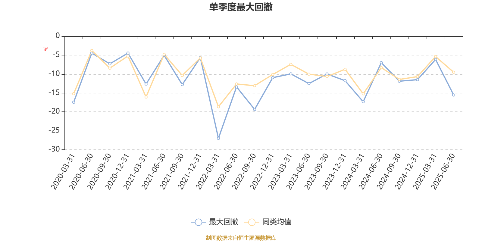 通过所选区间该基金净值增长率分位图,可以观察该基金与同类基金业绩比较情况。图为坐标原点到区间内某时点的净值增长率在同类基金中的分位数。