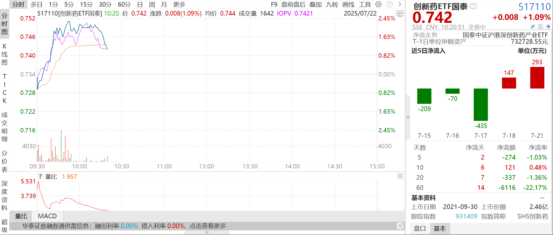 政策红利+行业拐点,创新药ETF(517110)5日领涨超6%!